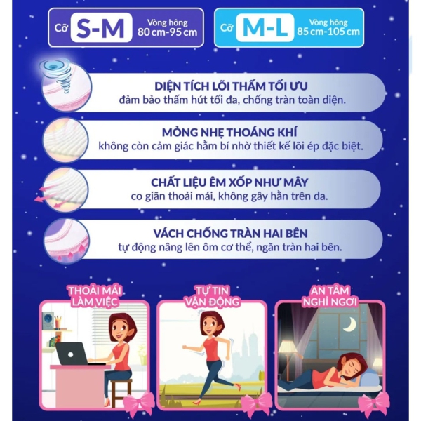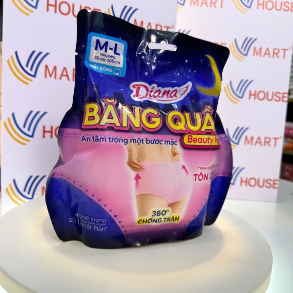 Băng quần Diana Sensi size M-L thích hợp với vòng hông từ 85cm - 105cm để sử dụng vào buổi tối những ngày đèn đỏ.