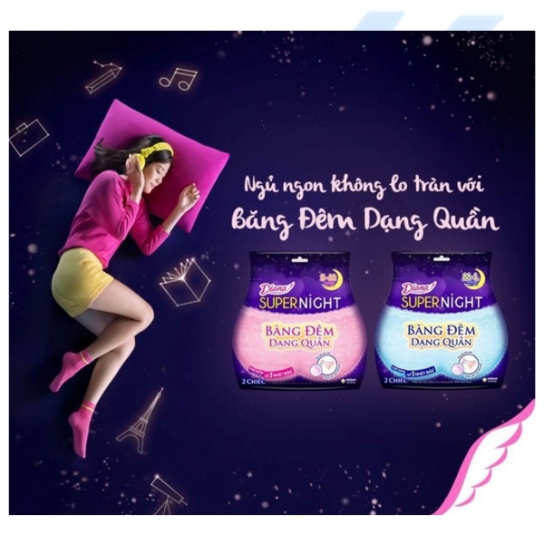 • Băng vệ sinh Diana ban đêm thiết kế dạng quần có thể thay thế như quần lót với chất liệu bông mềm mại, không gây kích ứng da, thích hợp cho vùng da nhạy cảm của vùng kín.