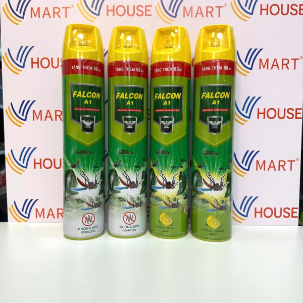 Bình Xịt Côn Trùng Falcon super 600ml Không Mùi Và Hương Chanh Tặng Thêm 60ml, Hương Thơm Tự Nhiên Đuổi Sạch Côn Trùng Gây Hại Cho Sức Khỏe.