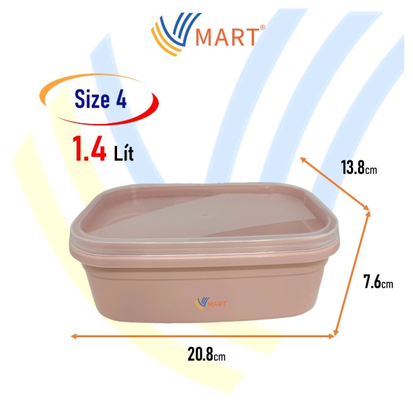 + Size 4: DxRxC = 20.8x13.8x7.6cm (1.4 Lít)
