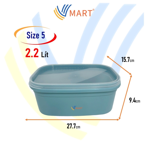 + Size 5: DxRxC = 27.7x15.7x9.4cm (2.2 Lít)