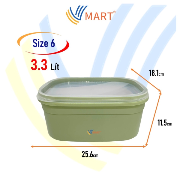 + Size Đại: DxRxC = 25.6x18.1x11.5cm (3.3 Lít)