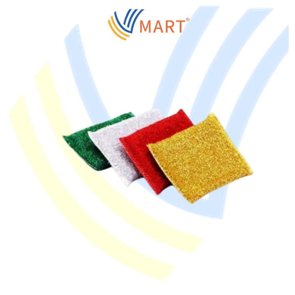 Miếng rửa chén kim tuyến được sản xuất và đóng gói tại Việt Nam. Miếng rửa chén có kích thước12 x 18 x 2 làm băng sợi tổng hợp cùng với cước kim tuyến, đóng thành lốc 4 cái với màu sắc khác nhau. Sản phẩm bảo quản nơi khô ráo, thoáng mát.