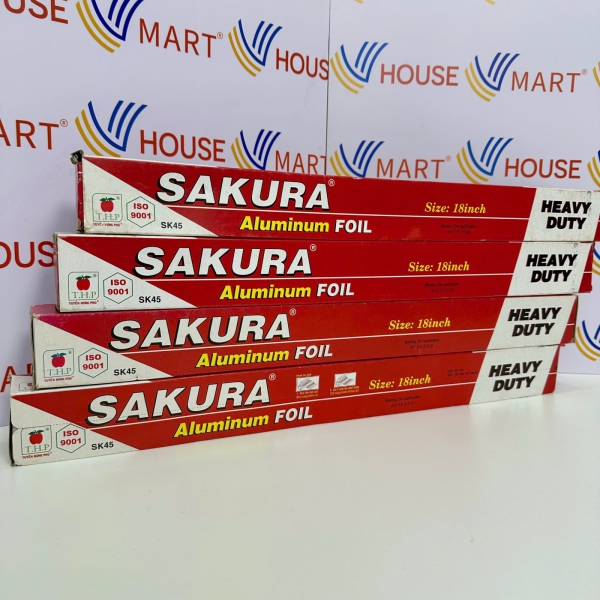 Màng Nhôm Nướng Sakura Sk18 - 45cmx7,2m, Dùng Để Bảo Quản, Gói Bọc Thực Phẩm Khi Nấu Ăn Hoặc Lưu Trữ Trong Tủ Đông