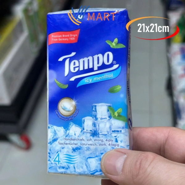 Khăn Giấy Tempo Bạc Hà 4 Lớp Kích Thước 21x21cm Lốc 10 Gói
