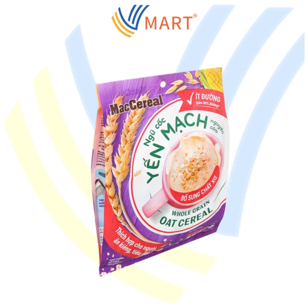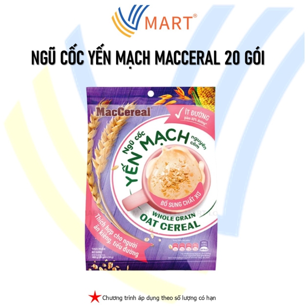 Ngũ Cốc Yến Mạch Ít Đường Macceral 20 gói là sản phẩm chất lượng, phù hợp cho những ai đang tìm kiếm ngũ cốc yến mạch ít đường. Với 20 gói, bạn sẽ có đủ lượng ngũ cốc để sử dụng trong thời gian dài. Sản phẩm này mang đến sự tiện lợi và chất lượng, là lựa chọn tốt cho sức khỏe của bạn. Ngũ Cốc MacCereal Ít Đường là sự kết hợp lý tưởng giữa hương vị thơm ngon từ sữa cùng nguồn dinh dưỡng chất lượng từ yến mạch và lúa mì nguyên cám mang đến thực phẩm bổ dưỡng cho sức khỏe của cả gia đình. Ngũ cốc có bổ sung nguồn chất xơ hòa tan, có tác dụng hỗ trợ tiêu hóa, tăng cảm giác no lâu, thích hợp cho mọi chế độ ăn kiêng. Sản phẩm được giảm tới 80% đường, giúp cân bằng nội môi đường huyết, giảm nguy cơ tim mạch, tiểu đường và tăng huyết áp.