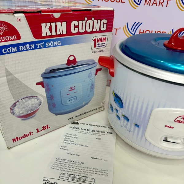 Dòng sản phẩm nồi cơm điện của Kim Cương được sản xuất với nhiều dung tích khác nhau phù hợp với mọi nhu cầu sử dụng. Tuy nhiêu loại dung tích 1.8l là dòng sản phẩm được lựa chọn sử dụng nhất. Với tổ ấm gia đình khoảng 3 - 6 người thì nồi cơm điện Kim Cương loại 1.8l nắp rời chống dính là lựa chọn tối ưu nhất cho gia đình bạn. Dung tích nồi cơm phù hợp với nhu cầu sử dụng vừa tiết kiệm được đáng kể điện năng lại giúp hạt gạo được chín đều mềm và dẻo hơn rất nhiều.