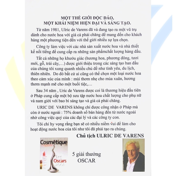 Nước Hoa Pháp ULRIC DE VARENS – 5 Giải Thưởng OSCAR