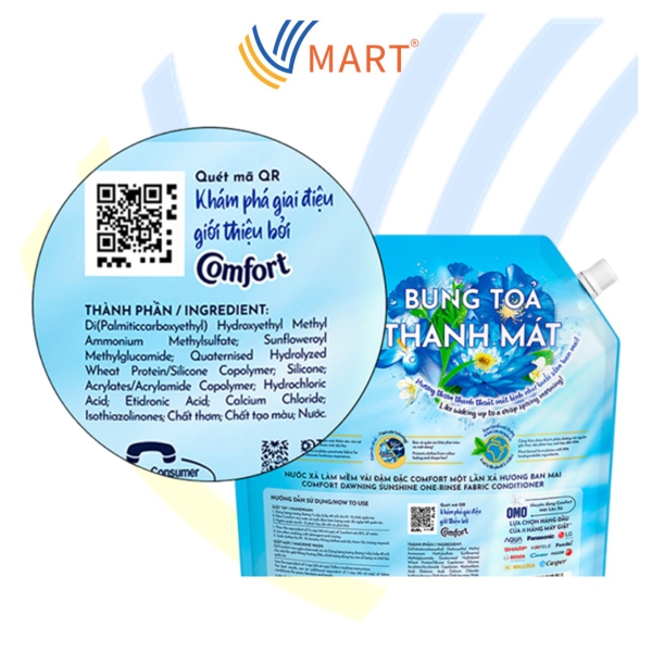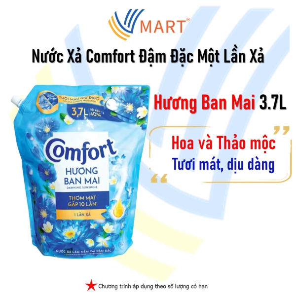 + Nước xả Comfort với công thức phân hủy sinh học đến 90%, nên rất thân thiện với môi trường. Hương thơm ban mai tươi mát, mang lại cảm giác thoải mái.