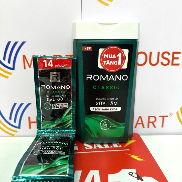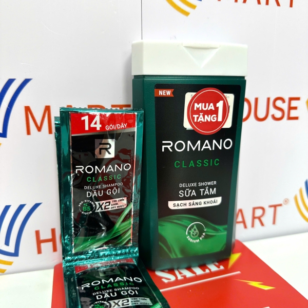 Sữa Tắm Romano Hương Nước Hoa Classic,Hương Attitude và Hương Gentleman 180g Tặng Dây 10 Gói Dầu Gội Cùng Loại
